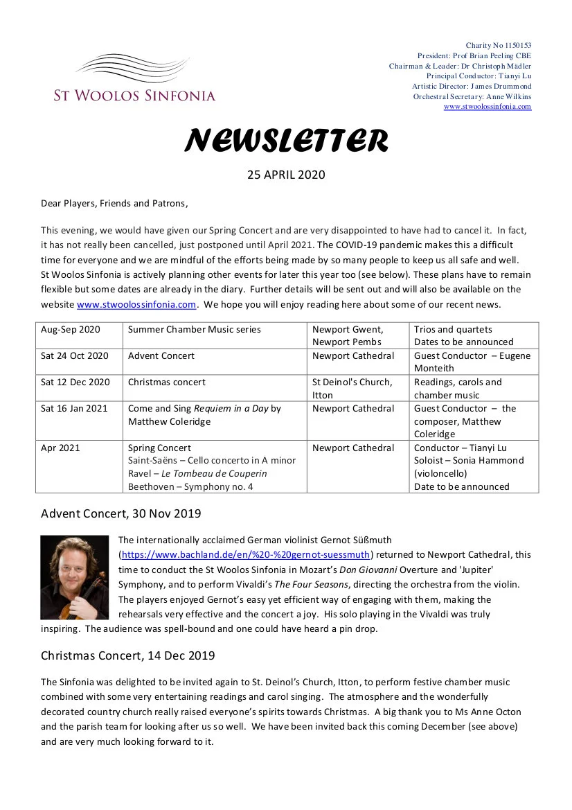 “I’ve been working with the St. Woolos Sinfonia since my arrival in Wales in 2014 and the orchestra has truly become my musical family in the UK. It has been an absolute joy to work with musicians of such high calibre, sensitivity and enthusiasm, and I have grown and developed so much over the years with the players. I am proud to be the Principal Conductor of such a wonderful group of human beings who, time and time again, inspire me with their incredible energy and love for music, and also inspire our loyal audience.” Tianyi Lu.